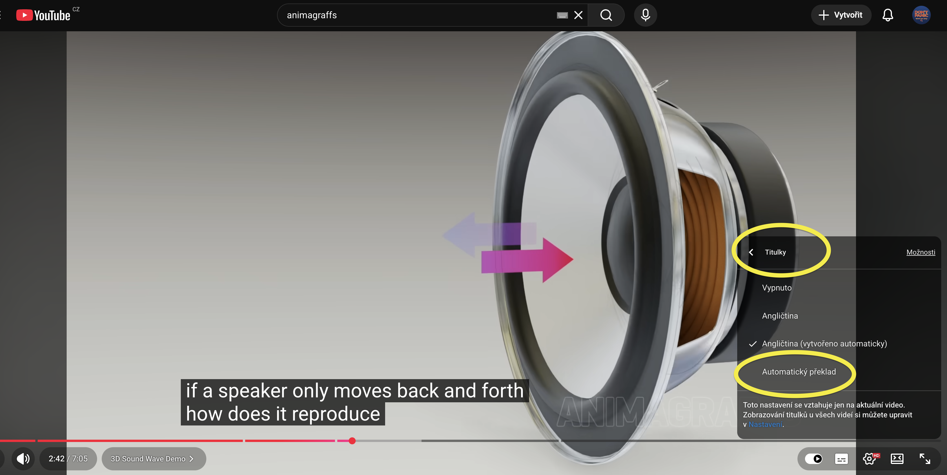 Titulky se poté automaticky zobrazí v českém překladu.