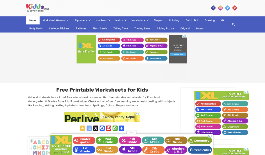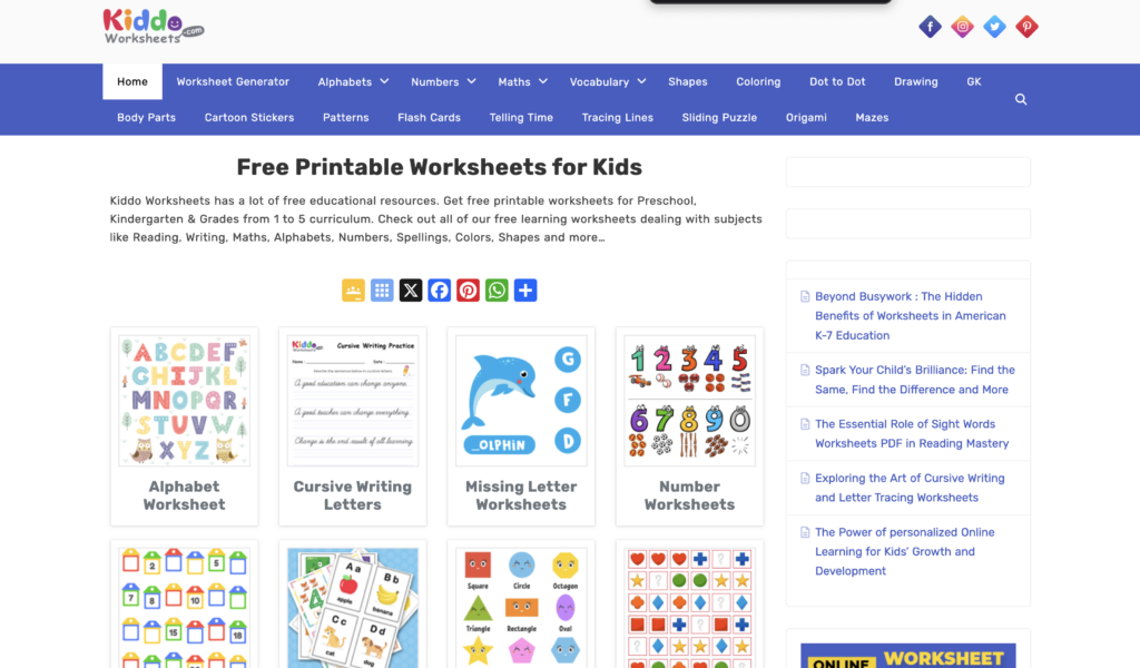 Web má poměrně vysokou návštěvnost. Přibližně 150–500 tisíc návštěv měsíčně z celého světa. Web Kiddoworksheets je celý v angličtině, což může být na první pohled limitující. Pro orientaci však velmi dobře funguje vestavěný překladač v prohlížeči. Je ale potřeba počítat s tím, že samotné pracovní listy, obsahující text, zůstávají v angličtině.