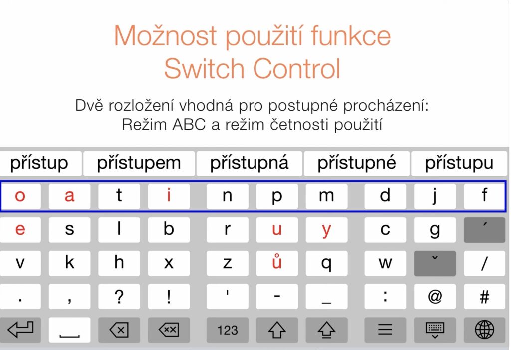 - možnost ovládat klávesnici externími ovladači a vestavěným systémem Switch Control